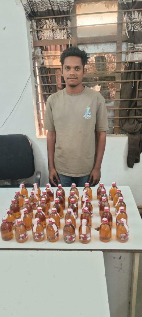 📅 दिनांक: 10 नवम्बर 2025📍 स्थान: थाना खरोरा, जिला रायपुररायपुर। वरिष्ठ पुलिस अधीक्षक डॉ. लाल उमेद सिंह के दिशा-निर्देश तथा अतिरिक्त पुलिस अधीक्षक (ग्रामीण) कीर्तन राठौर एवं नगर पुलिस अधीक्षक (विधानसभा) वीरेन्द्र चतुर्वेदी के मार्गदर्शन में, थाना प्रभारी खरोरा के नेतृत्व में पुलिस टीम ने अवैध शराब परिवहन और बिक्री के दो अलग-अलग मामलों में कार्रवाई करते हुए दो आरोपियों को गिरफ्तार किया है।पहला मामला:पुलिस को मुखबिर से सूचना मिली कि हितेंद्र यादव नामक युवक अवैध रूप से शराब की बिक्री कर रहा है। सूचना पर कार्यवाही करते हुए पुलिस टीम ने आरोपी को स्कूटी क्रमांक CG 04 HP 5816 के साथ पकड़ा।जांच के दौरान आरोपी के कब्जे सेएक सफेद प्लास्टिक बोरी में 40 पौवा सवा शेरा देशी मदिरा मसाला शराब (कुल मात्रा 7.200 बल्क लीटर)अनुमानित कीमत ₹4,000परिवहन में प्रयुक्त स्कूटी की कीमत ₹20,000इस प्रकार कुल जप्त मशरूका ₹24,000 का बरामद किया गया।आरोपी का नाम – हितेंद्र यादव पिता भरत यादव (उम्र 23 वर्ष)पता – वार्ड क्रमांक 08, शासकीय अस्पताल के पीछे, खरोरा, जिला रायपुरदूसरा मामला:उसी दौरान पुलिस ने एक विधि विरुद्ध संघर्षरत बालक को भी अवैध शराब परिवहन करते पकड़ा। उसके कब्जे से60 पौवा देशी मदिरा मसाला शराब (कुल मात्रा 10.800 बल्क लीटर)शराब की कीमत ₹6,000स्कूटी क्रमांक CG 04 HU 6893, कीमत ₹25,000कुल मशरूका ₹31,000 का जप्त किया गया।कानूनी कार्यवाही:दोनों मामलों में आरोपीगण के विरुद्ध अपराध क्रमांक 782/25, धारा 34(2) आबकारी एक्ट के तहत प्रकरण दर्ज कर कार्यवाही की गई है।हितेंद्र यादव को न्यायिक रिमांड पर अदालत में पेश किया गया, वहीं विधि विरुद्ध संघर्षरत बालक को बाल न्याय अधिनियम के तहत आवश्यक विधिक प्रक्रिया अपनाते हुए कार्रवाई की गई।पुलिस का संदेश:रायपुर पुलिस ने अवैध शराब विक्रय एवं परिवहन करने वालों के विरुद्ध सख्त कार्रवाई जारी रखने की बात कही है। थाना खरोरा पुलिस की यह कार्रवाई ग्रामीण क्षेत्रों में अवैध शराब कारोबार पर प्रभावी रोकथाम की दिशा में एक ठोस कदम मानी जा रही है।
