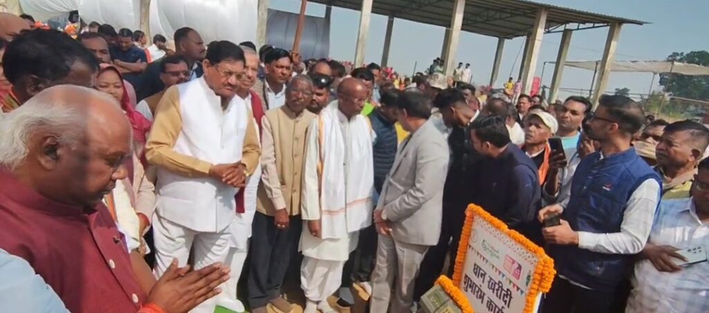सूरजपुर जिले के चंदरपुर धान खरीदी केंद्र में आज खाद्य मंत्री दयालदास बघेल ने धान खरीदी अभियान का शुभारंभ किया। इस अवसर पर जिले की 54 समितियों में पंजीकृत 63,819 किसानों से धान खरीदी की प्रक्रिया प्रारंभ की गई।इस वर्ष जिले में 4,25,009 मीट्रिक टन धान खरीदी का लक्ष्य निर्धारित किया गया है। शुभारंभ के दिन दो किसानों से लगभग 70 क्विंटल धान की खरीदी की गई।कार्यक्रम में जिले के प्रभारी मंत्री व खाद्य मंत्री दयालदास बघेल के साथ सांसद चिंतामणि महाराज, प्रेमनगर विधायक भुलन सिंह मरावी, प्रतापपुर विधायक शकुंतला पोर्ते, वन विकास निगम के अध्यक्ष रामसेवक पैकरा सहित अन्य जनप्रतिनिधि उपस्थित रहे।प्रशासन ने धान खरीदी व्यवस्था को सुचारू रूप से संचालित करने के लिए सभी तैयारियाँ पूर्ण कर ली हैं।