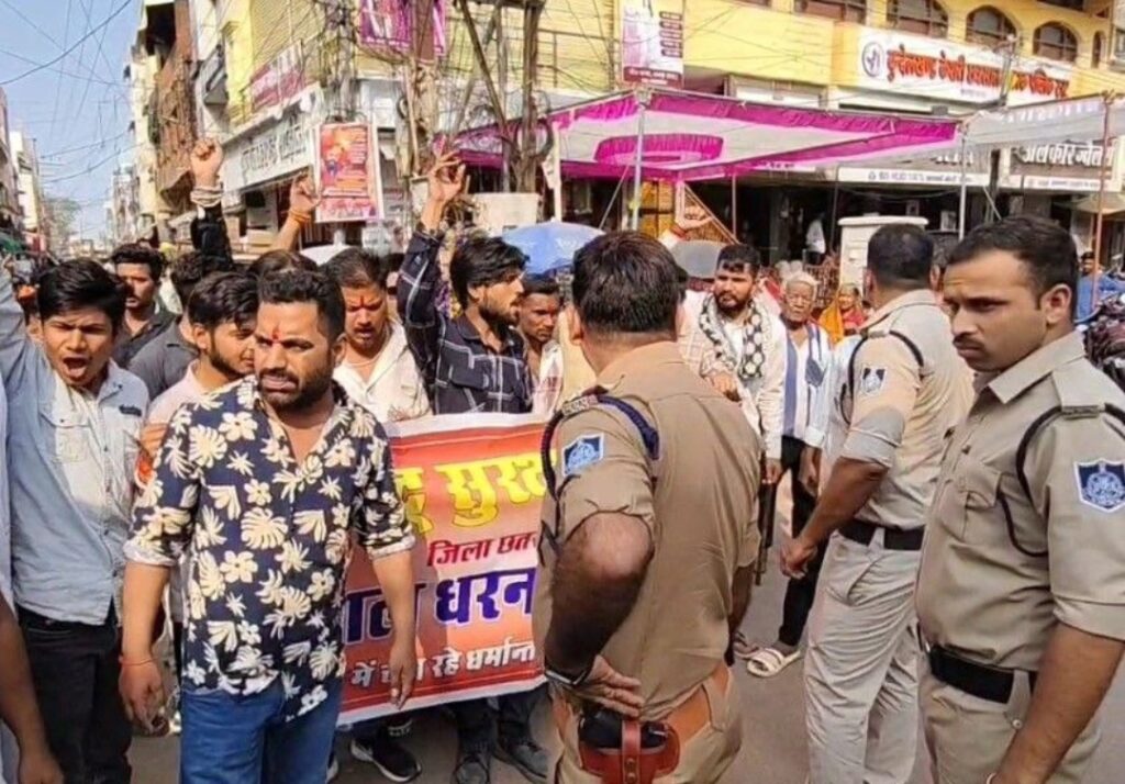 छतरपुर। जिले में बुधवार को हिंदू सुरक्षा मंच ने धर्मांतरण के विरोध में बड़ी रैली निकाली। संगठन ने ईसाई समुदाय की उस याचिका को खारिज करने की मांग की, जिसमें धर्मांतरण से जुड़े मामलों को लेकर अदालत में सुनवाई चल रही है।रैली की शुरुआत गल्ला मंडी से हुई और यह चौक बाजार तक निकाली गई। इस दौरान मंच के सदस्यों ने नारेबाजी करते हुए धार्मिक परिवर्तन पर रोक लगाने की मांग उठाई। रैली में बड़ी संख्या में कार्यकर्ता, संत और स्थानीय नागरिक शामिल हुए।हिंदू सुरक्षा मंच के पदाधिकारियों ने कहा कि जिले में धर्मांतरण की घटनाएं लगातार बढ़ रही हैं, जिससे सामाजिक माहौल प्रभावित हो रहा है। उन्होंने प्रशासन से मांग की कि ऐसे मामलों पर सख्त कार्रवाई की जाए और अदालत में लंबित याचिकाओं को खारिज किया जाए।पूरी रैली के दौरान सुरक्षा व्यवस्था के मद्देनज़र पुलिस बल तैनात रहा। प्रशासन ने कहा कि कार्यक्रम शांति से संपन्न हुआ और हालात पूरी तरह नियंत्रण में हैं।