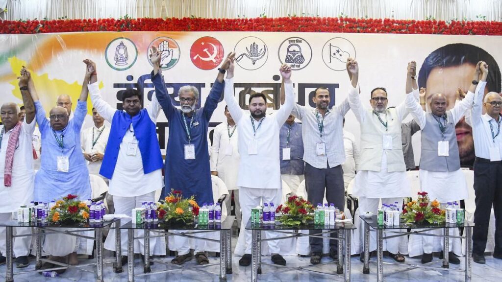 पटना, 18 अक्टूबर 2025: बिहार विधानसभा चुनाव के पहले चरण के लिए नामांकन प्रक्रिया पूरी हो गई है। इस दौरान INDIA (Indian National Developmental Inclusive Alliance) गठबंधन के भीतर RJD, कांग्रेस और VIP के बीच सात विधानसभा क्षेत्रों में ‘फ्रेंडली फाइट’ की स्थिति देखने को मिल रही है।गठबंधन के भीतर सीटों के बंटवारे में असमंजस और प्रत्याशियों के चयन पर विवाद के कारण कई सीटों पर गठबंधन के ही दलों के उम्मीदवार एक-दूसरे के खिलाफ चुनावी मैदान में हैं। इससे गठबंधन की एकजुटता पर सवाल उठने लगे हैं