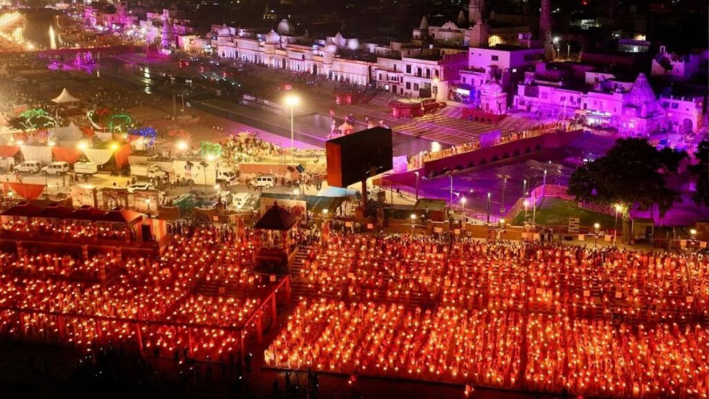अयोध्या में सोमवार 20 अक्टूबर को दीपोत्सव 2025 का आयोजन भव्यता और श्रद्धा के साथ हुआ, जिसमें 26,17,215 दीपों से रामनगरी जगमगा उठी। इस ऐतिहासिक आयोजन ने दो नए गिनीज वर्ल्ड रिकॉर्ड स्थापित किए।इस वर्ष के दीपोत्सव में 56 घाटों पर 26 लाख से अधिक दीप जलाए गए, जिससे सरयू नदी के किनारे एक दिव्य दृश्य प्रस्तुत हुआ। इस आयोजन में 33,000 स्वयंसेवकों ने भाग लिया, जिन्होंने दीपों की व्यवस्था और प्रज्वलन में योगदान दिया। गिनीज वर्ल्ड रिकॉर्ड के प्रतिनिधियों ने ड्रोन तकनीक के माध्यम से दीपों की गिनती की और आधिकारिक रूप से पुष्टि की। मुख्यमंत्री योगी आदित्यनाथ ने इस अवसर पर कहा कि दीपों की यह संख्या सत्य और धर्म की विजय का प्रतीक है, जो पांच शताब्दियों की अंधकार से प्रकाश की ओर बढ़ने का संकेत है। उन्होंने अयोध्या को ‘धर्म की राजधानी’ और ‘रामराज्य’ की परिकल्पना का केंद्र बताया। इस आयोजन में रामलीला, लेजर और ड्रोन शो, और भव्य आतिशबाजी ने श्रद्धालुओं का मन मोह लिया। राम की पैड़ी पर 2,128 पुजारियों और भक्तों ने सामूहिक आरती की, जो एक और गिनीज वर्ल्ड रिकॉर्ड के रूप में दर्ज हुई।