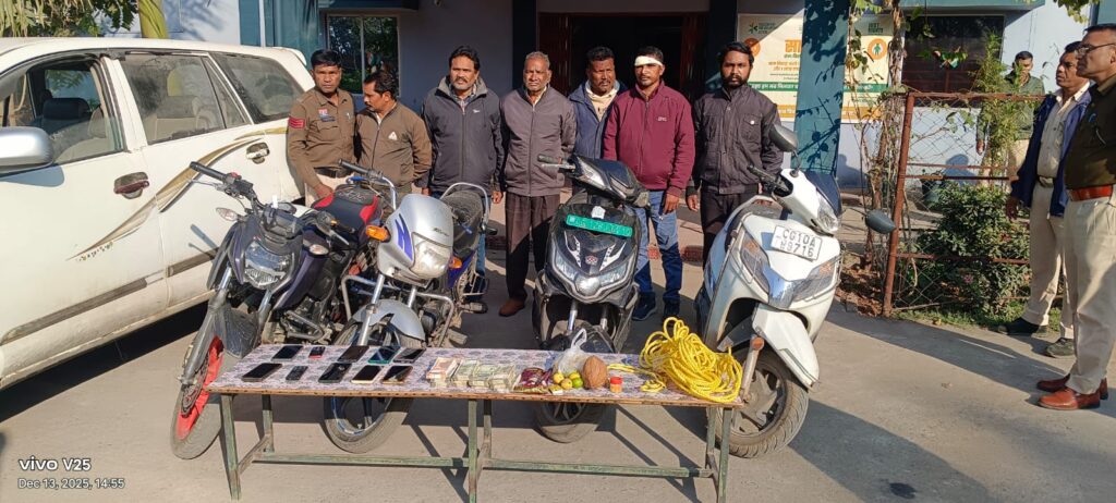 बुधवार की देर रात्रि हुई हत्या कांड के छः आरोपियों को जिला सत्र न्यायालय में पेश किया गया न्यायालय से सभी आरोपियों को जेल दाखिल कर दिया गया बुधवार की देर रात्रि हुई हत्या कांड का खुलासा जिला पुलिस अधीक्षक कार्यलय में किया गया दिनांक 11-12-2025 को थाना उरगा अंतर्गत ग्राम कुदरी स्थित एक फार्म हाउस में तीन व्यक्तियों की संदिग्ध मृत्यु की सूचना प्राप्त होते ही पुलिस बल तत्काल मौके पर पहुँचा। घटना की गंभीरता को दृष्टिगत रखते हुए विशेष जांच टीम गठित कर घटनास्थल निरीक्षण, शव पंचनामा, साक्ष्य संकलन एवं गवाहों से पूछताछ की कार्यवाही प्रारंभ की गई।जांच में यह तथ्य सामने आया कि मुख्य आरोपी तांत्रिक आशीष दास द्वारा तंत्र-मंत्र के माध्यम से 5 लाख रुपये को 2 करोड़ 50 लाख रुपये करने का झांसा देकर मृतक नितेश रात्रे, असरफ मेमन एवं सुरेश साहू को ग्राम कुदरी स्थित असरफ मेमन के फार्म हाउस में तंत्र-मंत्र की प्रक्रिया के नाम पर बुलाया गया।दिनांक 10-12-2025 की रात्रि को आरोपी तांत्रिक आशीष दास अपने साथ नायलॉन की रस्सी, नींबू, नारियल, अगरबत्ती एवं अन्य तंत्र-मंत्र सामग्री लेकर फार्म हाउस पहुँचा। उसने मृतकों एवं अन्य सह-आरोपियों को कमरे के बाहर रस्सी पकड़कर खड़े रहने को कहा तथा तंत्र-मंत्र की प्रक्रिया के बहाने एक-एक कर मृतकों को कमरे के अंदर बुलाया।सर्वप्रथम मृतक नितेश रात्रे को कमरे के अंदर बैठाकर उसके गले में नायलॉन की रस्सी डाली गई तथा बाहर खड़े सह-आरोपियों द्वारा रस्सी खींचकर उसका गला घोंट दिया गया, जिससे उसकी मौके पर ही मृत्यु हो गई। इसी प्रकार क्रमशः मृतक असरफ मेमन एवं सुरेश साहू को भी तंत्र-मंत्र की प्रक्रिया के बहाने कमरे के अंदर बुलाकर नायलॉन रस्सी से गला घोंटकर उनकी हत्या की गई।घटना के पश्चात मृतकों के परिजनों एवं स्थानीय लोगों द्वारा तीनों को उपचार हेतु अस्पताल ले जाया गया, जहाँ चिकित्सकों द्वारा परीक्षण उपरांत तीनों को मृत घोषित कर दिया गया।