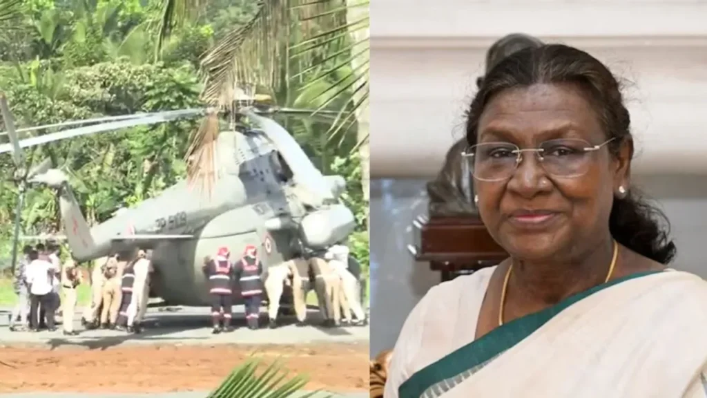केरल दौरे के दौरान राष्ट्रपति द्रौपदी मुर्मू के साथ एक बड़ा हादसा टल गया। कोझिकोड में लैंडिंग के दौरान उनके हेलिकॉप्टर के पिछले पहिए नए बने अस्थायी हेलिपैड की कंक्रीट सतह में धंस गए। हालांकि, सुरक्षा अधिकारियों की तत्परता से स्थिति को तुरंत संभाल लिया गया और राष्ट्रपति पूरी तरह सुरक्षित रहीं। किसी को भी कोई चोट नहीं आई है।जानकारी के अनुसार, राष्ट्रपति मुर्मू सोमवार को अपने आधिकारिक कार्यक्रमों में हिस्सा लेने के लिए केरल पहुंची थीं। वापसी के दौरान उनका हेलिकॉप्टर कोझिकोड जिले के एक अस्थायी हेलिपैड पर उतरा। लैंडिंग के तुरंत बाद हेलिकॉप्टर के पिछले पहिए उस स्थान पर धंस गए, जहां कंक्रीट का काम हाल ही में पूरा हुआ था और वह पूरी तरह सूखा नहीं था।घटना के बाद राष्ट्रपति की सुरक्षा में तैनात एसपीजी और वायुसेना के अधिकारियों ने तुरंत मोर्चा संभाला। हेलिकॉप्टर को स्थिर किया गया और राष्ट्रपति को सुरक्षित बाहर निकाला गया।अधिकारियों ने बताया कि हेलिपैड की सतह पर काम हाल ही में किया गया था, इसलिए वह पूरी तरह मजबूत नहीं हो पाया था। घटना की जांच के आदेश दे दिए गए हैं।