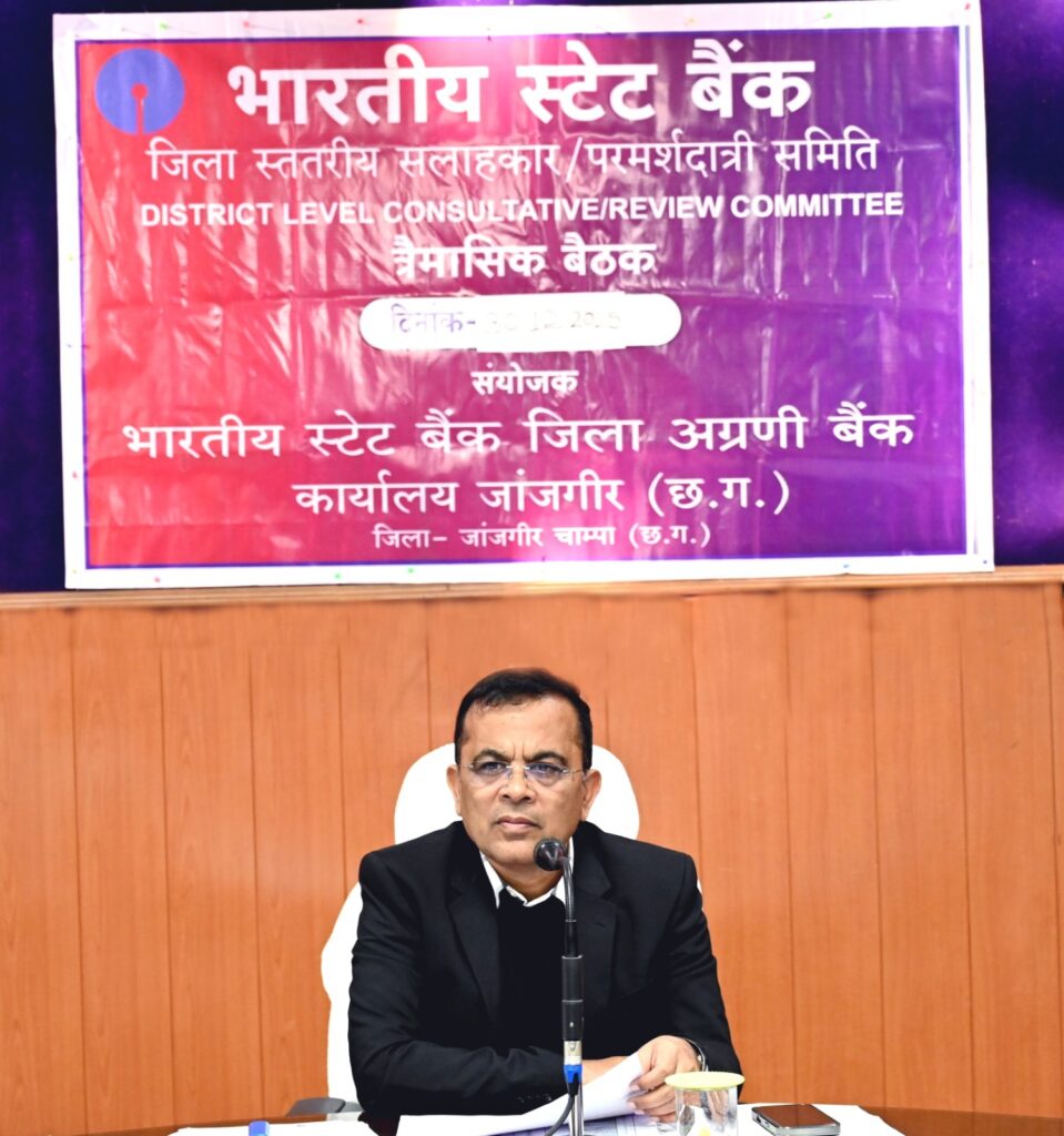 जांजगीर-चांपा 30 दिसम्बर 2025/ कलेक्टर श्री जन्मेजय महोबे ने आज कलेक्टोरेट सभाकक्ष में जिला स्तरीय सलाहकार एवं परामर्शदात्री समिति की त्रैमासिक बैठक ली। बैठक में उन्होंने विभिन्न हितग्राहीमुखी विकास तथा रोजगारमूलक योजनाओं की प्रगति की समीक्षा की और अधिकारियों को इन योजनाओं के प्रकरणों में शत-प्रतिशत स्वीकृति और सहायता ऋण राशि के समयबद्ध वितरण के निर्देश दिए। इस अवसर पर जिला पंचायत मुख्य कार्यपालन अधिकारी श्री गोकुल रावटे, रिजर्व बैंक, लीड बैंक एवं अन्य बैंकों के अधिकारी उपस्थित थे।