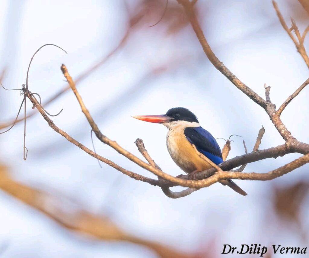 29 दिसंबर 2025 की सुबह बारनवापारा वन्यजीव अभयारण्य में बर्डर डॉ. दिलीप वर्मा द्वारा ब्लैक-कैप्ड किंगफिशर का दुर्लभ और महत्वपूर्ण अवलोकन दर्ज किया गया। यह इस प्रजाति का बारनवापारा से पहला प्रमाणित रिकॉर्ड है, जबकि पूरे छत्तीसगढ़ में यह दूसरा पुष्ट अवलोकन माना जा रहा है।डॉ. दिलीप वर्मा द्वारा किए गए इस अवलोकन को फील्ड फोटोग्राफिक साक्ष्यों के साथ विधिवत दस्तावेजीकृत किया गया है, जिससे इसकी वैज्ञानिक पुष्टि संभव हो सकी है। यह रिकॉर्ड भविष्य में पक्षी-विविधता के अध्ययन, संरक्षण योजना निर्माण तथा अभयारण्य प्रबंधन से जुड़े निर्णयों के लिए एक महत्वपूर्ण आधार प्रदान करेगा।