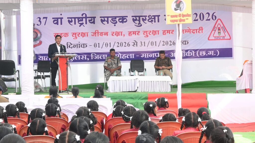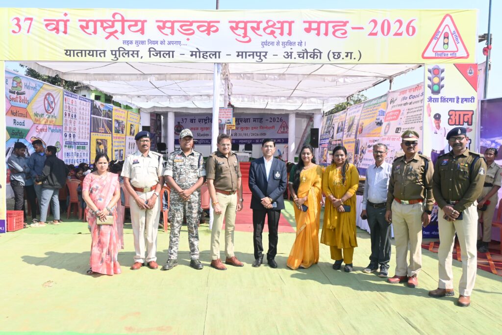 जिला मोहला –मानपुर–अम्बागढ़ चौकी में आज दिनांक 01 जनवरी 2026 को 37वें राष्ट्रीय सड़क सुरक्षा माह 2026 का शुभारंभ किया गया। कार्यक्रम का उद्घाटन पुलिस अधीक्षक श्री यशपाल सिंह (भा.पु.से.) द्वारा फीता काटकर एवं दीप प्रज्वलित कर किया गया। यह सड़क सुरक्षा माह 01 जनवरी से 31 जनवरी 2026 तक मनाया जाएगा।